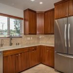 bar with dual zoned wine cooler. The spacious gourmet kitchen showcases A frican Mahogany cabinetry, under mount lighting, Cambria