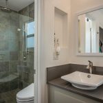 quartz counter tops, polished porcelain tile back splash, and KitchenA id appliances that sparkle under the skylight. Heated porcelain tile